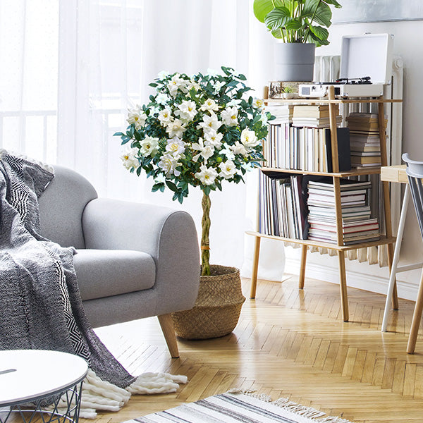 Introducing our exquisite Braided Gardenia Tree - the perfect addition to your outdoor oasis! With its stunning braided trunk and lush green foliage. this tree is sure to add a touch of elegance and sophistication to any garden or patio. The Braided Gardenia Tree features an impressive height of 4-5 feet. making it a standout centerpiece in any outdoor space. Its branches are adorned with gorgeous. fragrant gardenia blossoms. which bloom in late spring and summer. filling the air with their sweet perfume.