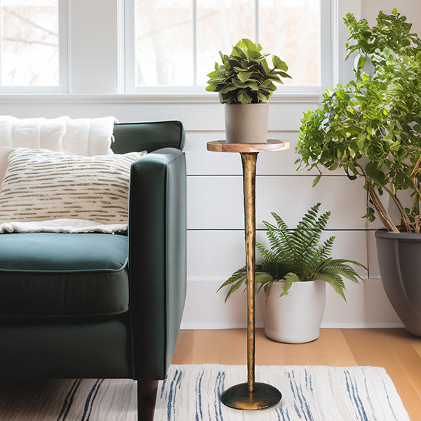 Elevate your space with our Antique Brass Cocktail Table. It boasts a lustrous acacia wood top for timeless elegance. This table isn't just furniture; it's a conversation starter. a focal point that ties your room together.