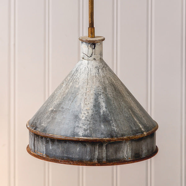 This linear light fixture is a statement piece with all the charm and character of a genuine. rustic antique. Its beautifully distressed metal finish and unique funnel-shaped shades bring a one-of-a-kind feel to any room. We are completely obsessed with its ability to add a bold touch of farmhouse style over a kitchen island. a dining room table. or even in an entryway.