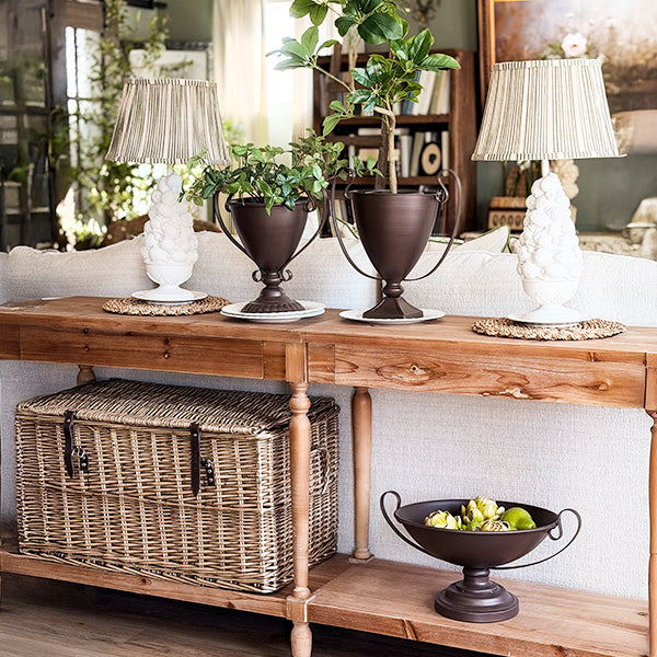 Crafted from metal with substantial weight. these urns have real presence. They're not flimsy accents—they're statement pieces designed to anchor a console. sideboard. or dining table with confidence.