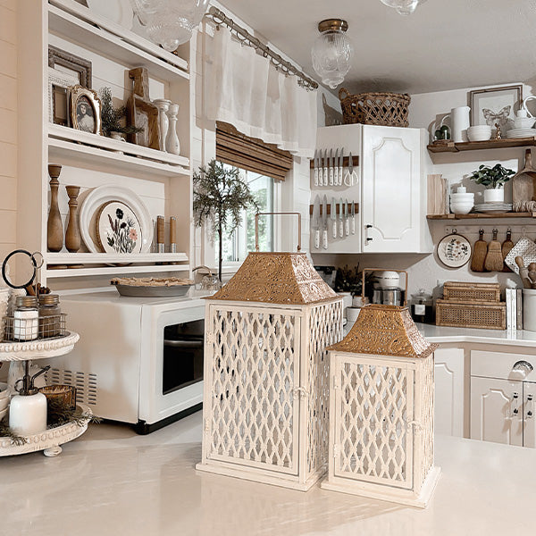 Exquisite Design: Crafted from high-quality metal. these lanterns feature intricate cage detailing and ornate accents. giving them a sophisticated and timeless appeal. The large size of the lanterns makes them a striking focal point in any room or outdoor setting.