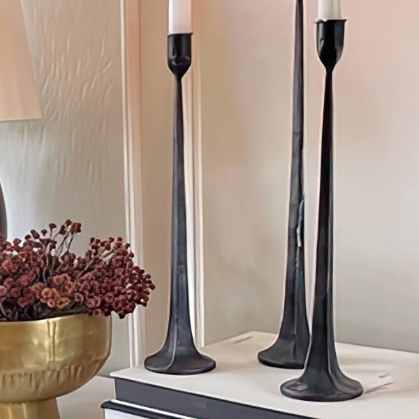 Simple yet sophisticated. our iron taper candlestick holders provide a sleek style with their tapered design while delivering timeless beauty and rustic elegance. Featuring a gorgeous black finish. this set of three taper candlestick holders will make their presence known wherever they are displayed.