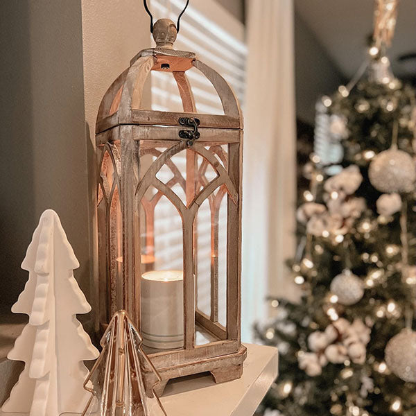 This Cathedral Arched Wooden Candle Lantern has a weathered finish and BEAUTIFUL cathedral arched details... we are in LOVE! You can use this lantern with candles or an LED light to brighten up your space. This lantern can be used on a tabletop to make a perfect centerpiece. by your front door under your covered porch to greet guests. or atop your bedside table as a nightlight!