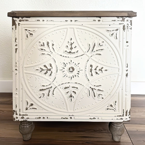 Every table tells a story with its unique ceiling tiles. making sure no two are exactly alike. Bring a piece of exceptional design into your home and enjoy the perfect mix of beauty and practicality with our Architectural Salvage Ceiling Tile Side Table. Get ready to transform your home decor with a touch of vintage charm and modern-day convenience!