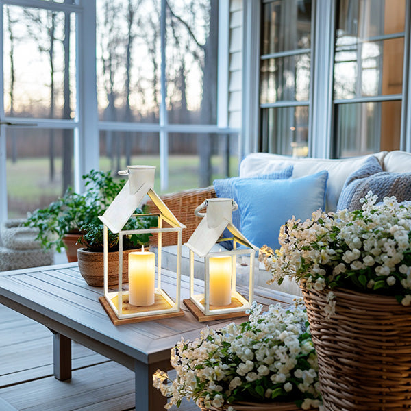 Okay. confession time! These open frame metal lanterns are so darn charming. a few of our team members might have 'accidentally' taken some home. (Hey. we're only human. right? And can you blame us? Just LOOK at them!) If you're going for that farmhouse decor vibe. these are a MUST. Seriously. the clean white frame. the sweet little 'chimney' detail. and the warm wooden base? It's like they jumped straight out of a Pinterest board.