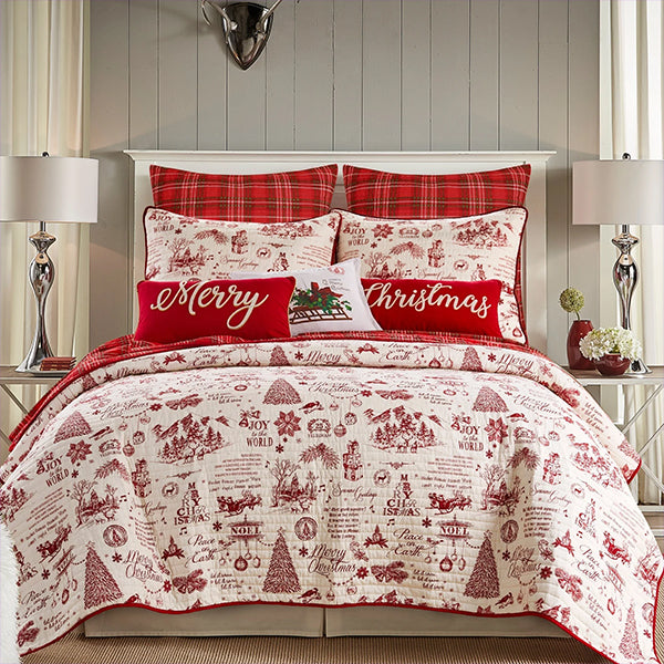 Snuggle up in style and make your bedroom a holiday haven with our Christmas Reversible Cotton Quilt Set. Offered in classic red and white. this festive bedding brings warmth and cheer to your space while keeping you snug throughout the season. With its reversible design. you can effortlessly switch up your look to match your Christmas decor. If you choose the Quilt Set. it includes matching shams for a perfectly coordinated look.