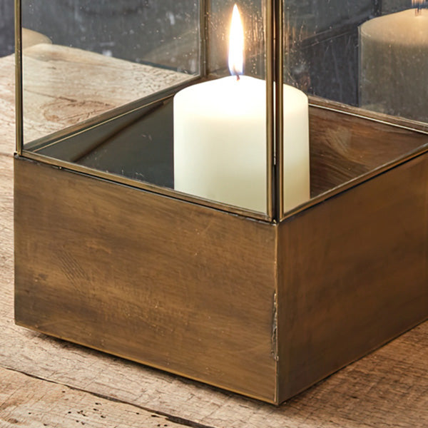 - These courtyard lanterns are designed to let their true beauty shine when you add pillar candles inside. The glass paneled construction allows the flickering candlelight to gently illuminate through. creating a warm. ambient glow that will brighten up any space.