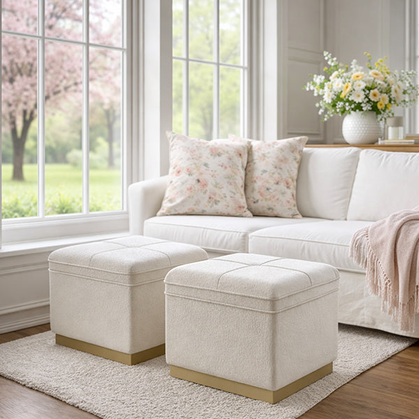 Style them together at the foot of your bed for that high-end. designer look. Scatter them in your living room. Slide the smaller ones under a console. The cream upholstery + gold bases add that soft-luxe finish that makes everything around it look more expensive.
