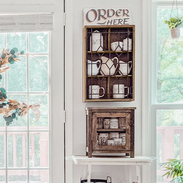 Use this Decorative Curio Cabinet with Black Iron Door in your bathroom to hold your favorite beauty products OR you can fill up mason jars with your bathroom essentials to really create a farmhouse look in your home. Hang it in your kitchen to display your treasured china pieces or even a spice cabinet! Wherever you choose to hang this beauty. its beautiful finish will DEFINITELY create farmhouse charm in your home that will greet your family and friends with a warm welcome!