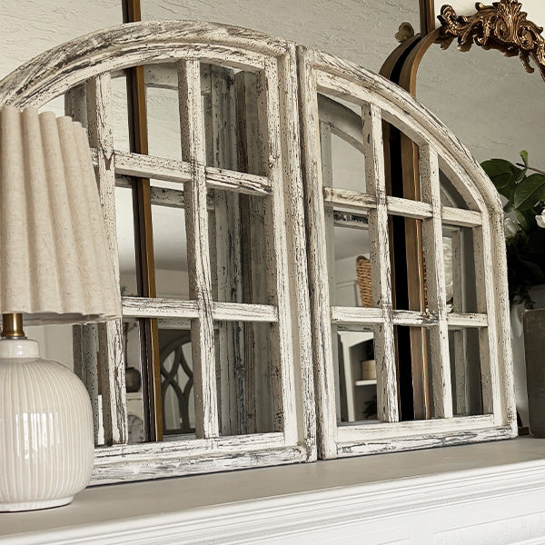 - Bonjour. Beautiful! These stunning arched frames are practically dripping with French château charm. featuring that perfectly imperfect distressed white finish that screams "I've been fabulous for centuries!"
