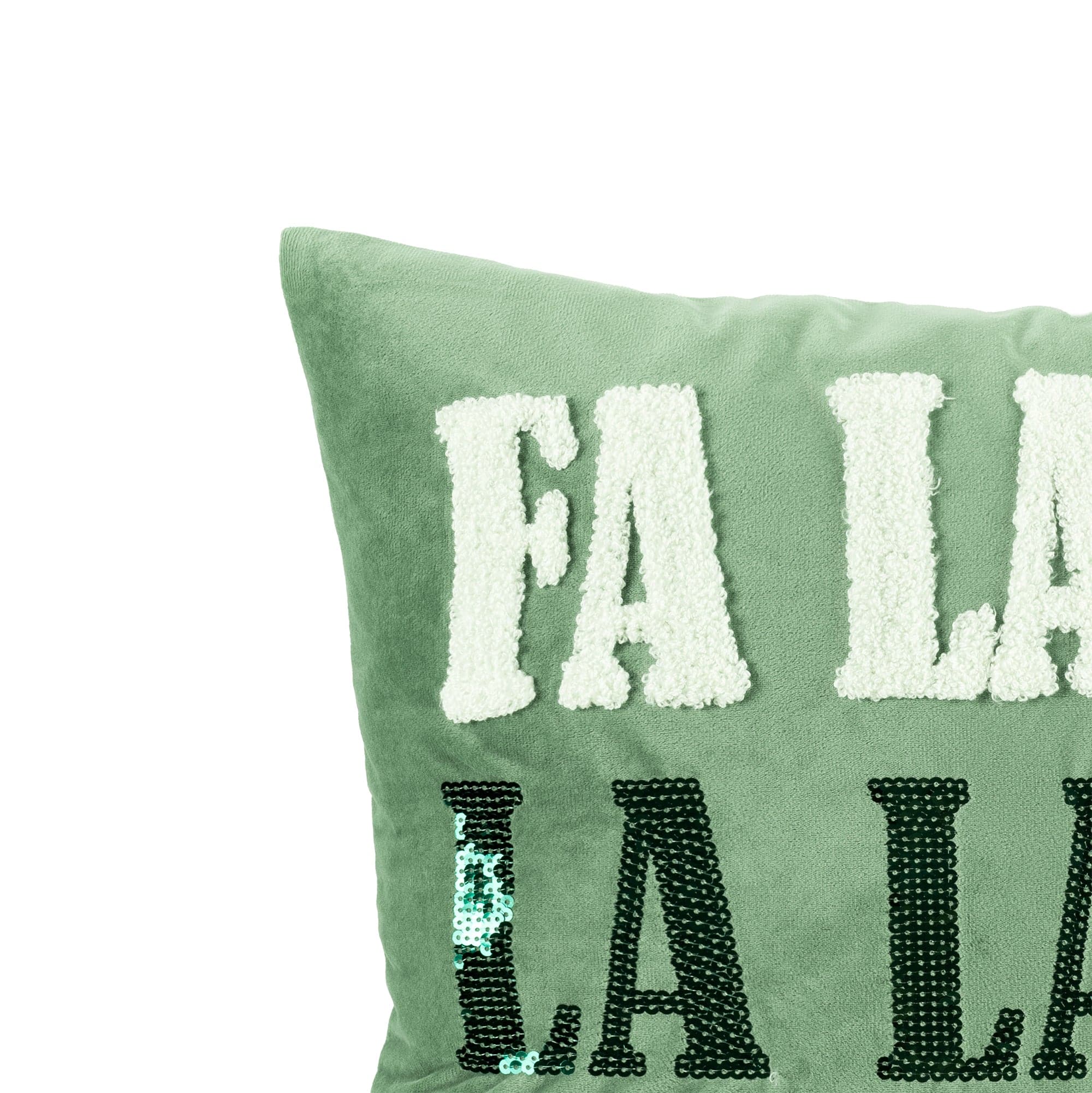 Get into the Christmas spirit with this lyrical Fa La La La Decorative Pillow. Embellished with a variety of textures. this text covered pillow spreads cheer into any room. Pair this classic holiday shade with accents in reds and whites for a complete holiday-themed vignette.