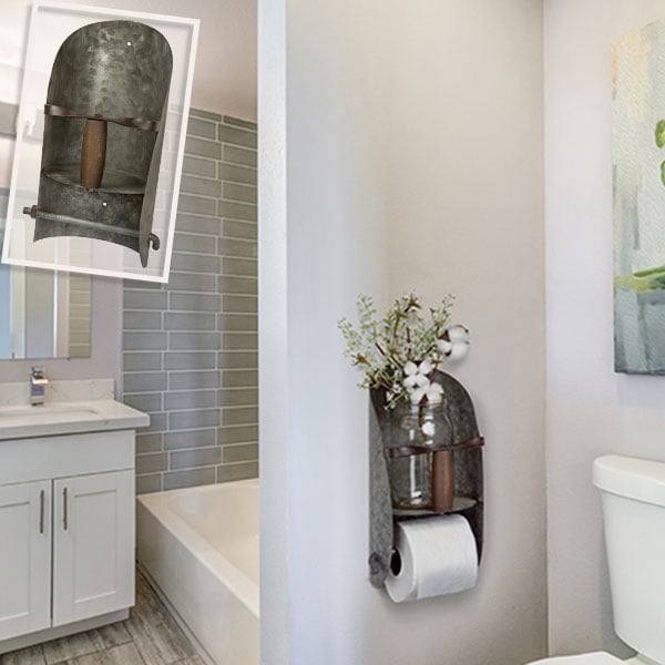 YAAAAAY! We're absolutely in LOVE with this piece and couldn't wait to bring it to you! As soon as we laid eyes on this toilet paper caddy piece our hearts skipped a beat!We're all kinds of crazy about simple pieces like this. You'll be AHHMAZED! It's the simple things that make a huge difference. This vintage-inspired Galvanized Metal Toilet Paper Caddy is beautifully designed and super functional! We absolutely adore that this piece holds your extra toilet paper so you don't have to constantly be replacing it! It's simple... simply place one toilet paper roll on the bar and VOILA you'll be changing it less often! The shelf can even hold your replacement roll! Or get creative and place a vase of fresh flowers above! What about using this caddy in the kitchen to hold small tea towels and herbs/spices on the shelf?! We love the idea of using it to hold hand towels. extra bathroom soaps and so much more!Oh. and that AHHmazing price! We worked hard to keep this at such a low price for you... So we imagine these will be going pretty fast. You'll probably want to get yours NOW! ;)Enjoy!
