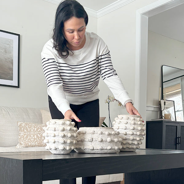 Each planter in this trio features a handcrafted. one-of-a-kind textured design with delicate baubles that create a chic and elegant pattern. The crisp white finish offers a fresh. modern contrast that makes your greenery stand out beautifully. With this unbeatable deal. your outdoor decor gets a sophisticated refresh without the designer price tag!