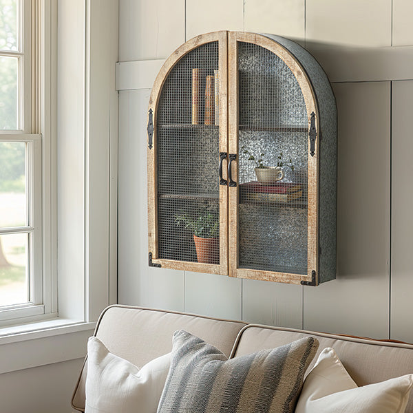 Bring character and organization to your home with the Hanging Arched Shelf with Galvanized Back. Its dual functionality. galvanized back. and rustic farmhouse appeal make it a standout addition to any space. Elevate your decor and enjoy a stylish storage solution that transcends conventional design. Order now and reimagine your space with this versatile and charming arched shelf!