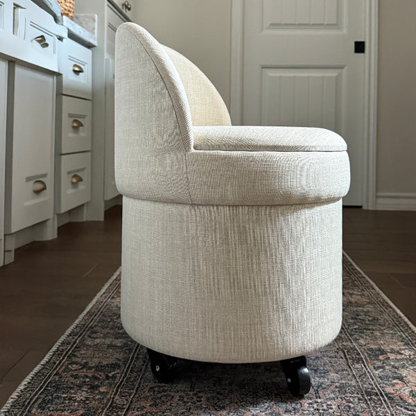 Meet the chair with a secret life… it rolls. it stores. it seats — and now it comes with an AMAZING new low price that'll make your heart skip a beat! Our Hide & Seat Upholstered Barrel Chair with Storage is the multitasking MARVEL your home has been begging for. Part cozy perch. part hidden organizer. this beauty brings serious style and clever functionality to any room.