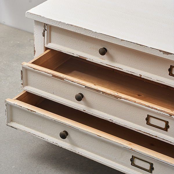 - It boasts a beautiful distressed wood finish. exuding rustic charm.