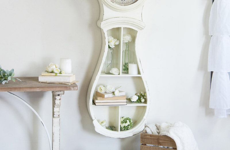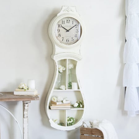 This timeless clock is the perfect addition to your empty wall spaces! Add it to your kitchen to hold spices hand towels herbs and even recipes! We love the idea of using this piece in your living room to display family photos succulents or potted plants. Place one in the bathroom to hold hand towels and toiletries. The sky is truly the limit with this one...