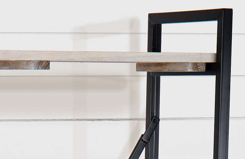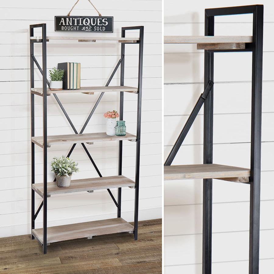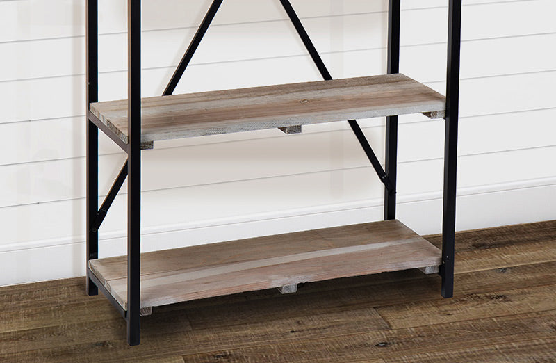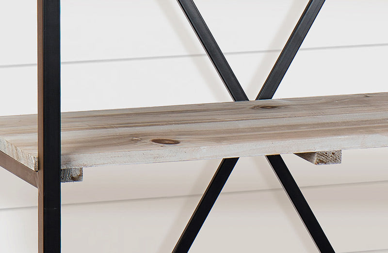 This piece truly has it all! We simply ADORE that it combines two different elements (aged wood and distressed iron) in their somewhat raw forms. Use this free standing shelf unit in your foyer office craft room kitchen (imagine open shelving cabinets!) bathroom mudroom...the sky is the limit! This industrial unit is a STAND ALONE bookshelf that comes with a cross back making it super sturdy able to hold all your beautiful glass vases reefs and large books.