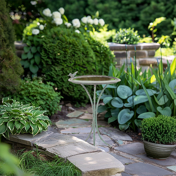Elevate your garden with our Antique Green Iron Bird Bath. a charming focal point that invites nature to your outdoor space. Crafted with intricate detailing and finished in a classic antique green. this bird bath exudes vintage elegance and rustic charm. Perfect for attracting feathered friends and adding a touch of whimsy to your garden. it provides a serene watering spot for birds while adding visual interest to your landscape. Whether placed among flowers or nestled in a quiet corner. this bird bath brings both beauty and functionality to your outdoor sanctuary.