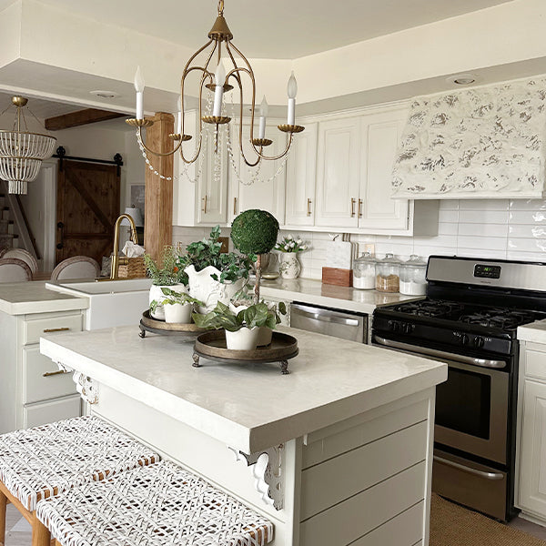 Antique Gold Finish: A distressed. brushed-gold iron surface adds just the right touch of glam while staying true to rustic and farmhouse aesthetics.