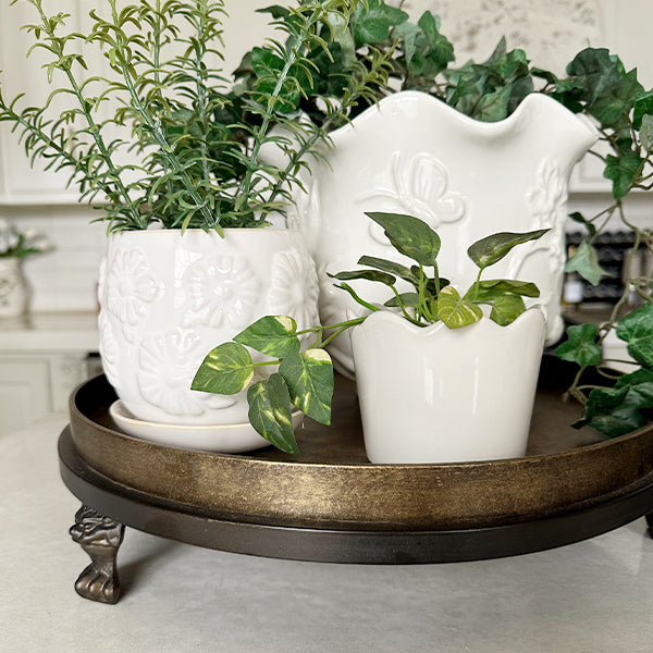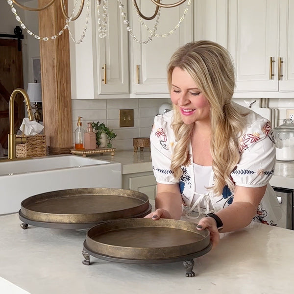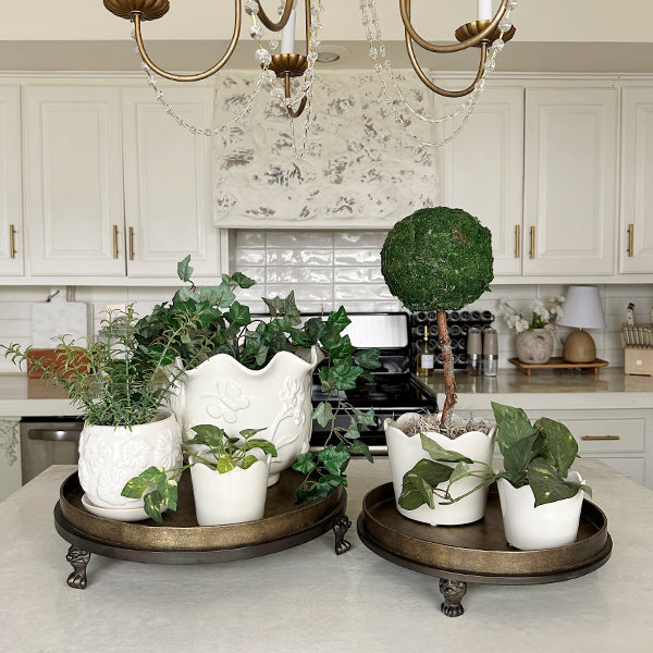 Whether you're entertaining or just showing off your style. the Antique Gold Iron Footed Display Risers add height. texture. and a sprinkle of whimsy to any display.