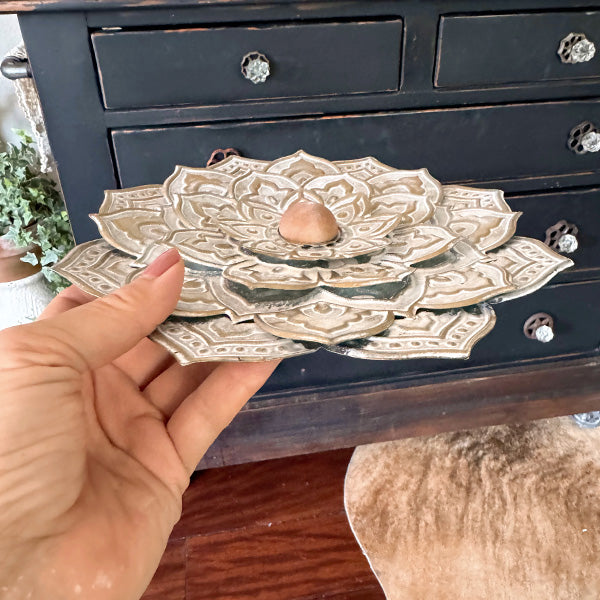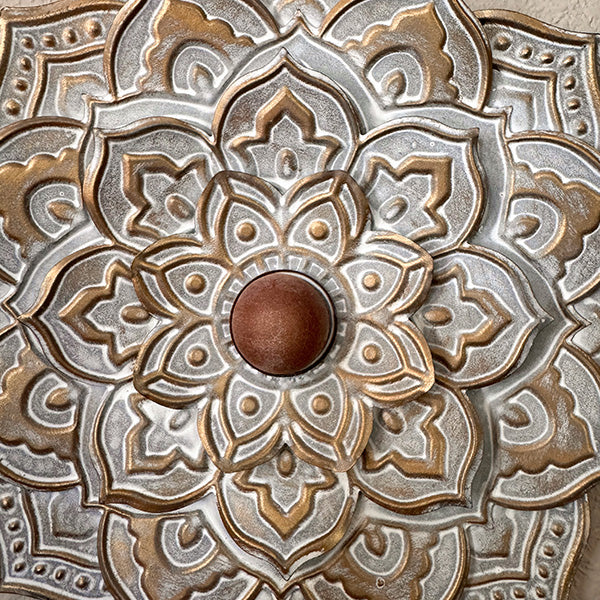 Let your walls bloom with personality and charm. The Antique Gold and Gray Mandala Wall Art Medallion is the perfect piece to ground your decor with peaceful. artistic flair.