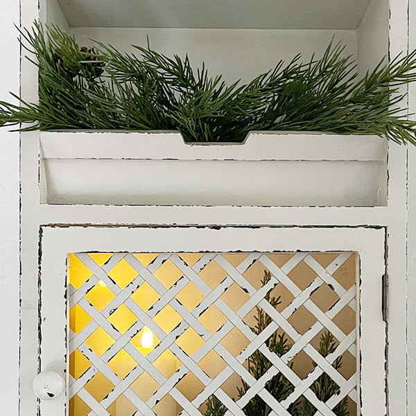 Have this Multi-Functional Distressed Wood Hanging Organizer greet you in your entryway or display it in your home office or even your bathroom! This piece will keep your clutter managed and will add so much rustic charm to your space. Have this whitewashed wall shelf hold your scarves. hats. and jackets in your mudroom while the top is styled with your favorite decor accents or candles! Let your guest towels and hand towels hang from the hooks in your bathroom and store toiletries in the cabinet. This piece is SO versatile. the possibilities are ENDLESS!