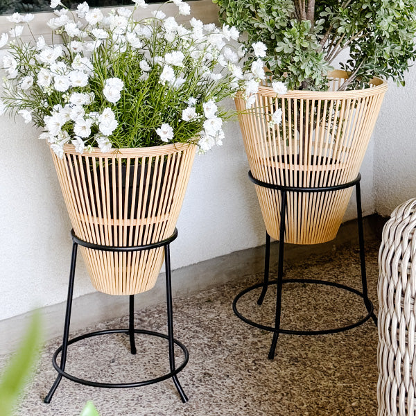 Whether you're refreshing your summer decor. styling a patio corner. or just looking for a fresh way to highlight your leafy friends. this Bamboo Planter on Metal Stand Set of Two delivers on charm. versatility. and modern good looks. Add them to your cart and let your plants (or your style) stand tall!