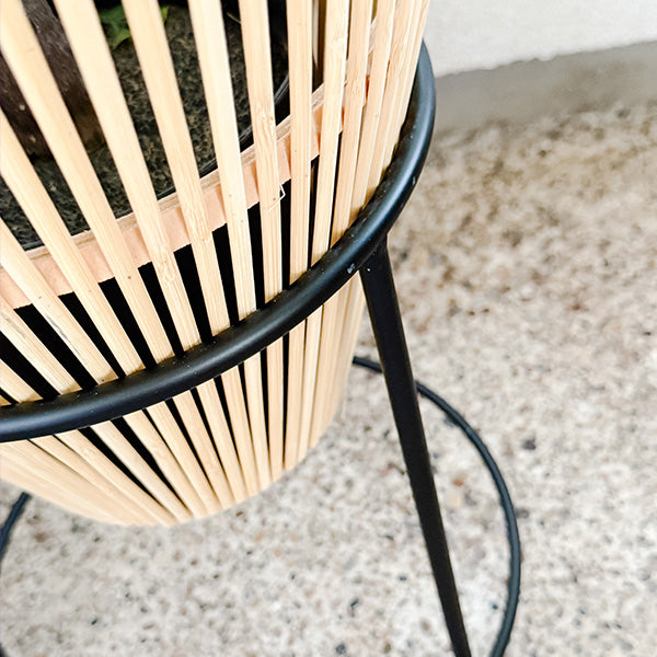 Sturdy Metal Base: Each removable bamboo planter sits in a bold black metal stand. adding balance and a splash of contrast to the soft natural tones.