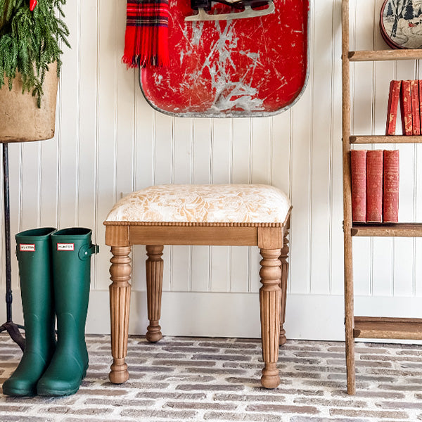 We're obsessed with the gorgeous photos and video they created featuring our Natural Wood Ottoman Bench with Floral Upholstered Top—styled to absolute perfection and full of cozy charm.