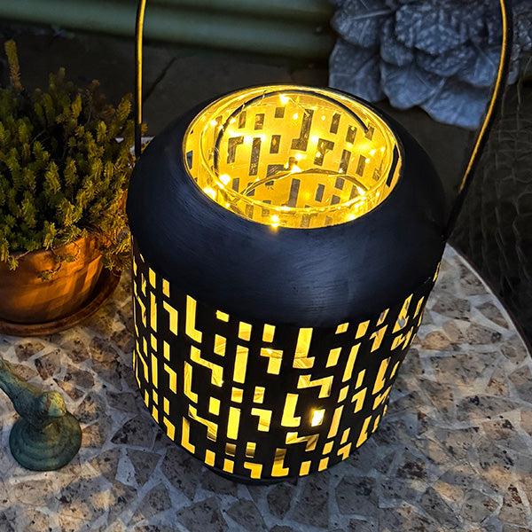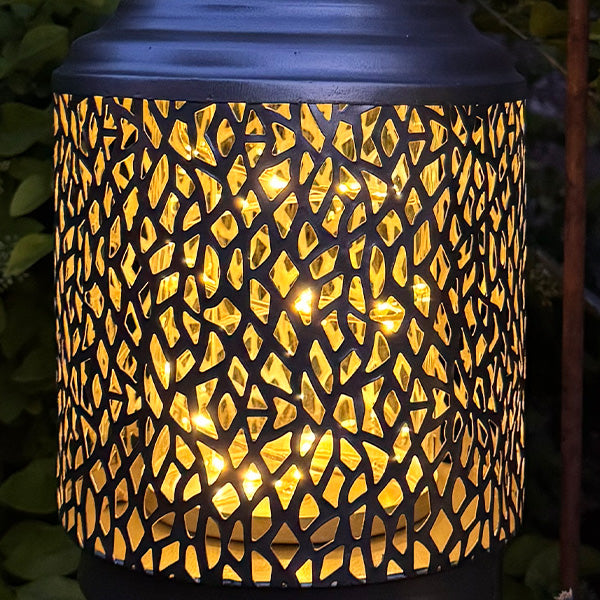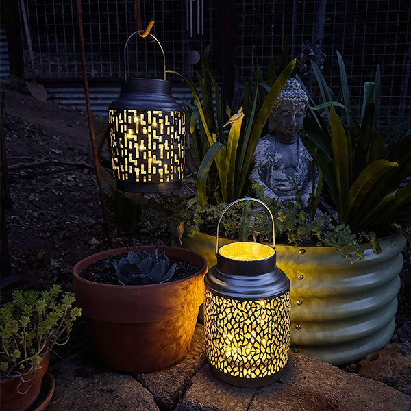 Light up your outdoor decor with these adorable Hanging Outdoor Lanterns! Pick your vibe: edgy dark metal with bold geometric cutouts or bubbly champagne with dreamy leaf patterns.