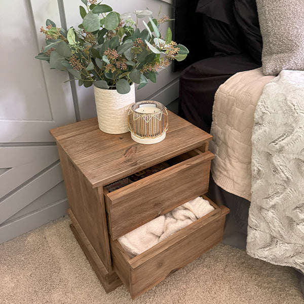 Transform your bedroom into a cozy farmhouse haven with our exquisite Traditional Pine Wood Nightstand. Enjoy abundant storage space for your daily essentials while embracing timeless craftsmanship. Don't miss out on our daily deals – order now and indulge in the perfect fusion of classic charm and modern convenience.