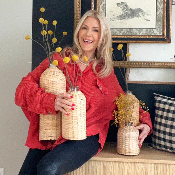 Thank you to @thepickledrose for the photo and video of the Rattan Wrapped Glass Vases