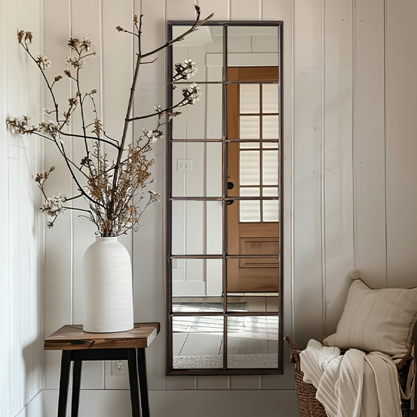 With its exceptional craftsmanship and eye-catching design. this Window Pane Rectangular Wall Mirror is sure to become the centerpiece of your home decor. Its versatile style seamlessly complements a variety of interior design themes. from modern and contemporary to farmhouse and rustic-chic.
