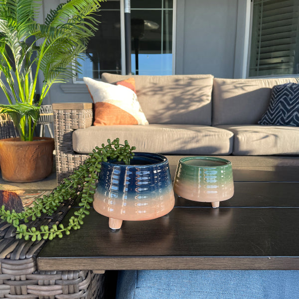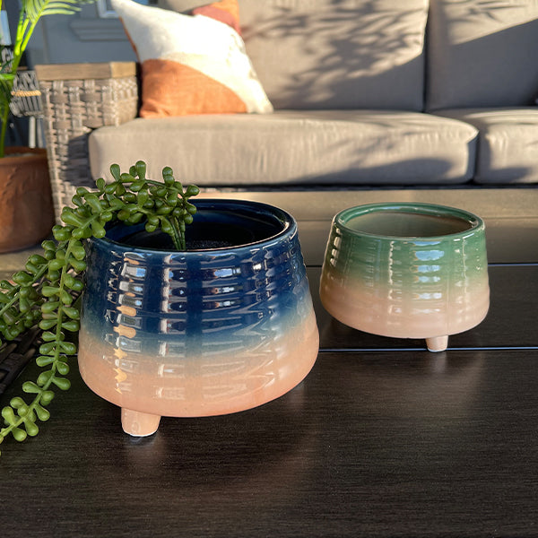 Get ready to be amazed! This set of two Reactive Footed Containers blends Japandi decor with a mesmerizing reactive glazed finish—where simplicity meets artistry. No two are exactly alike. as each container features a unique blend of earthy tones that shift and flow in a natural gradient effect. The subtle ribbed texture enhances the handcrafted charm. while the sturdy footed base adds an elevated. minimalist touch. Perfect for Japandi-inspired spaces. these containers bring unexpected beauty. balance. and rustic elegance to any setting!