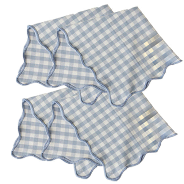Those gorgeous scalloped edges add instant personality without trying too hard. The hemstitch detail on the placemats catches the light beautifully. while the gingham napkins elevate classic checks from casual to collected. They're substantial enough to protect your table but soft enough to drape naturally. The blue and white colorway works with everything from modern farmhouse to coastal to French country.