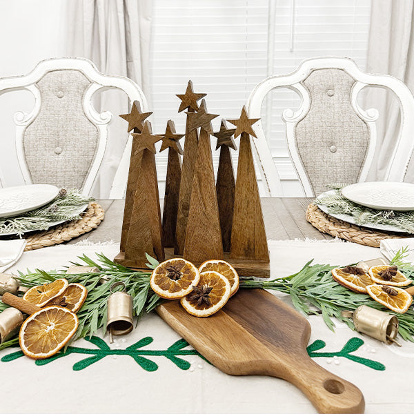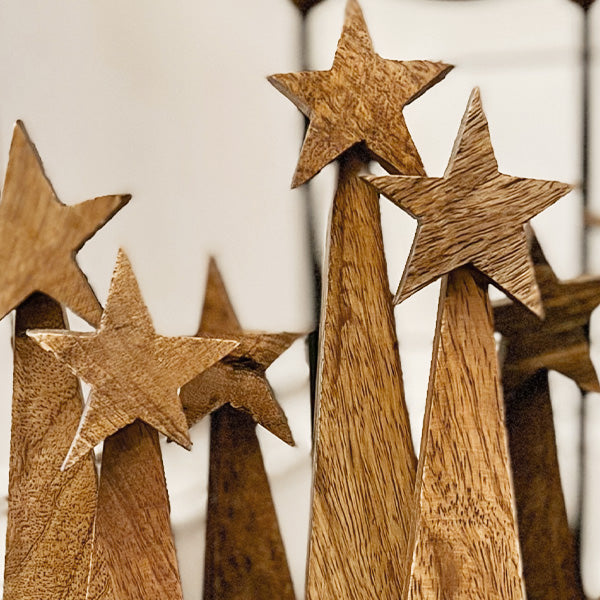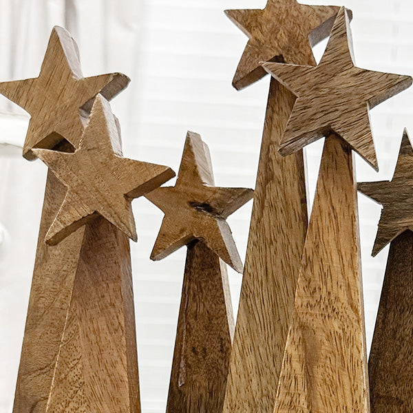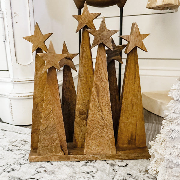 - Rustic elegance: Seven wooden trees. each with a simple yet charming design and a star on top. perfect for farmhouse or minimalist decor.