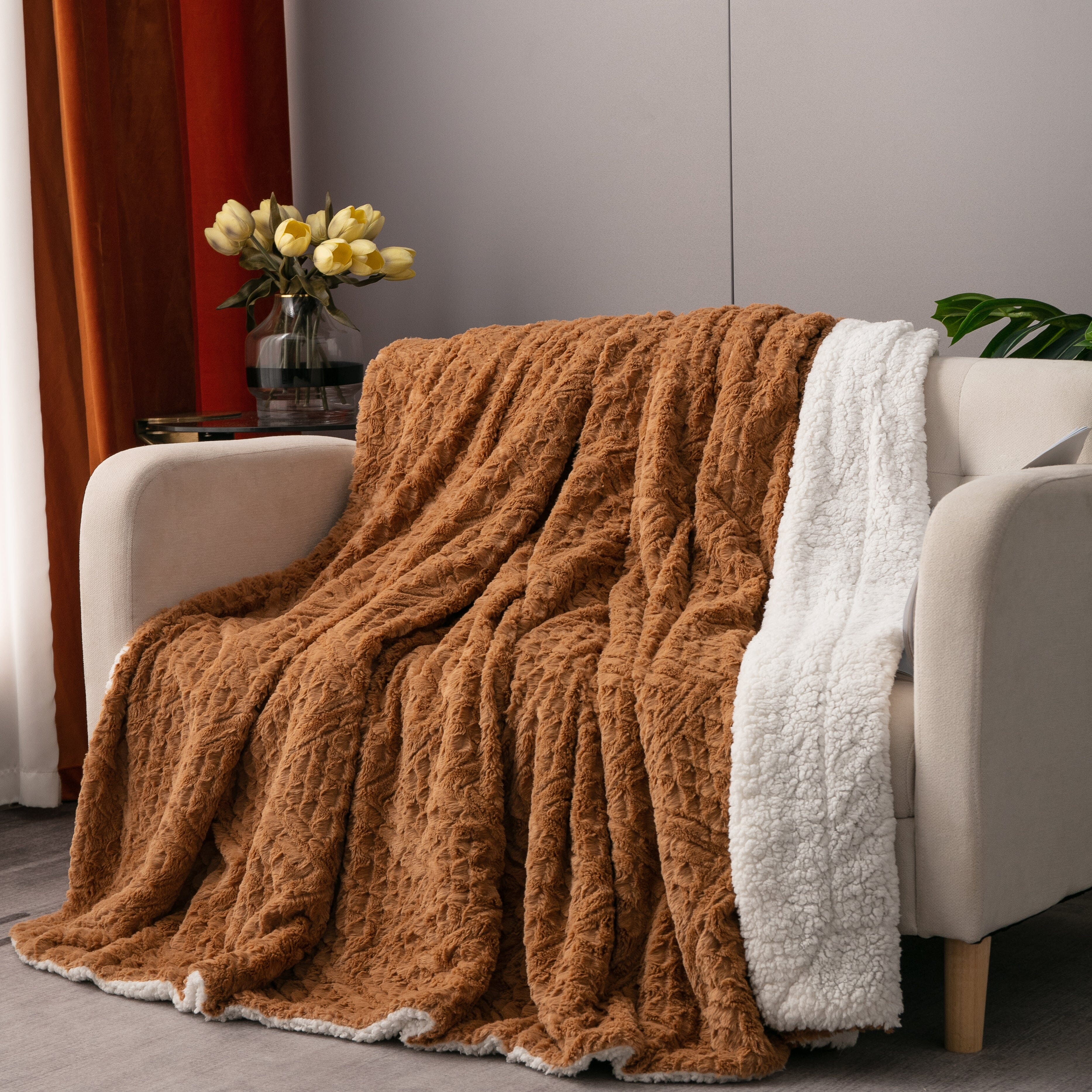 This versatile blanket is your ticket to ultimate warmth and softness. making it the perfect companion for chilly fall evenings. cold winter nights. or cozy movie marathons throughout the year. Elevate your relaxation experience with our faux fur blanket – a true masterpiece of comfort and style.