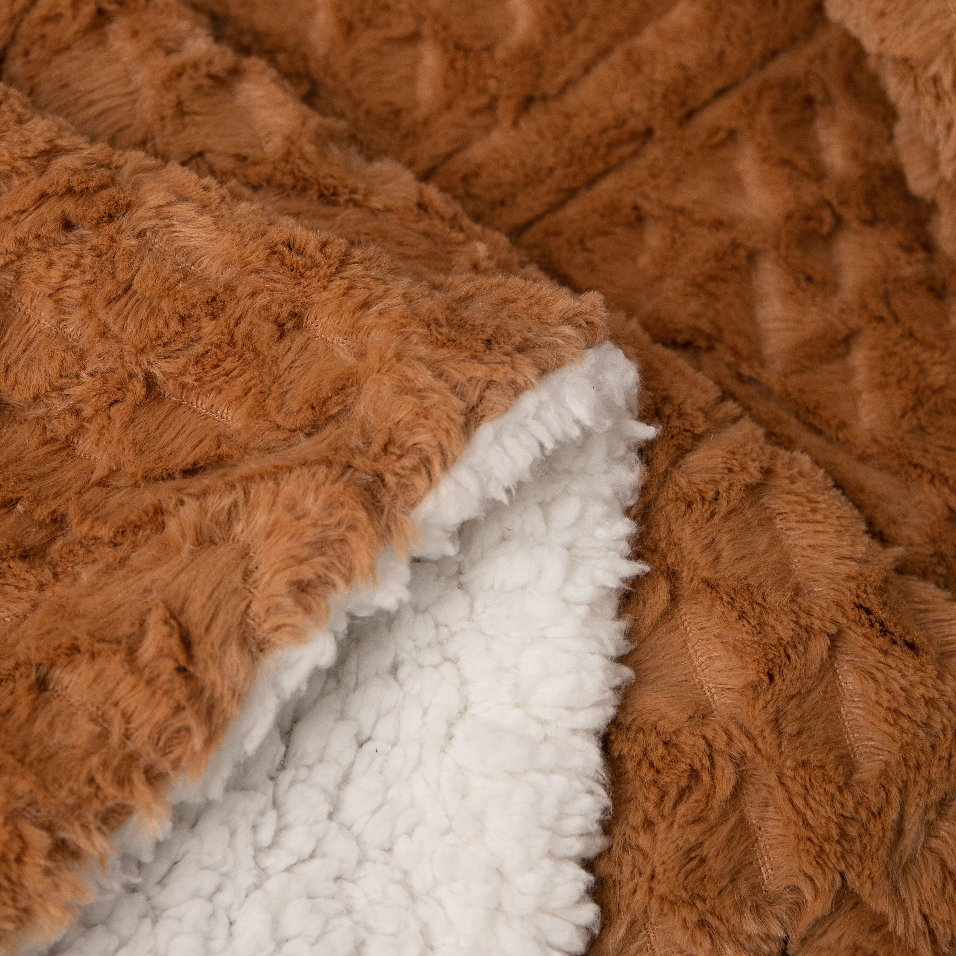 Indulge in unparalleled comfort with our exquisite faux fur blanket. This opulent blanket boasts a luxuriously soft and plush texture. adorned with a distinctive embossed chevron geometric pattern. As you wrap yourself in its cloud-like embrace. you'll revel in the sumptuousness of its buttery. short-pile faux fur on one side. complemented by a fluffy faux Sherpa backside.