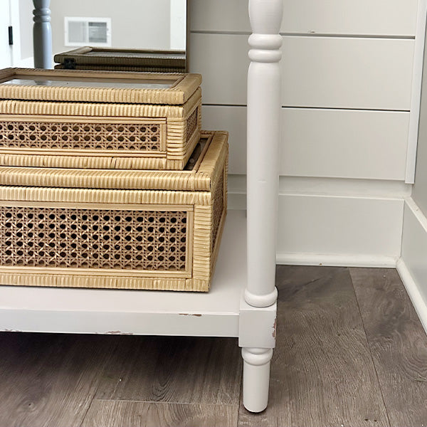 - Rustic Aesthetic: The distressed detailing and natural wood grain patterns create a rustic charm that enhances any decor style. from farmhouse to coastal.