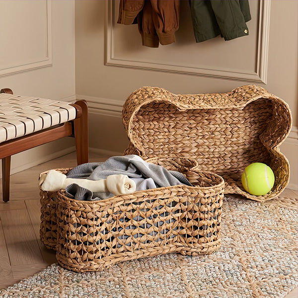 Get ready to fetch some serious style points with our Dog Bone Woven Hyacinth Baskets. coming at you in a bark-tastic set of two! These baskets aren't just for tidying up; they're here to add a whole lot of wag-worthy charm to your space.